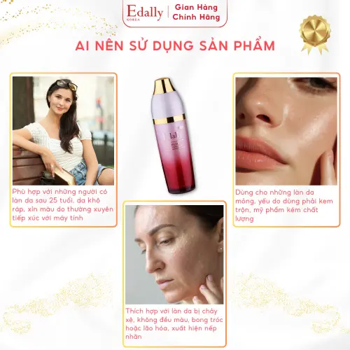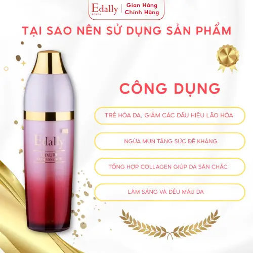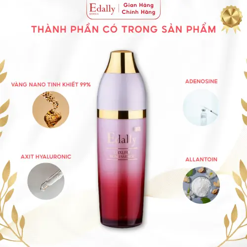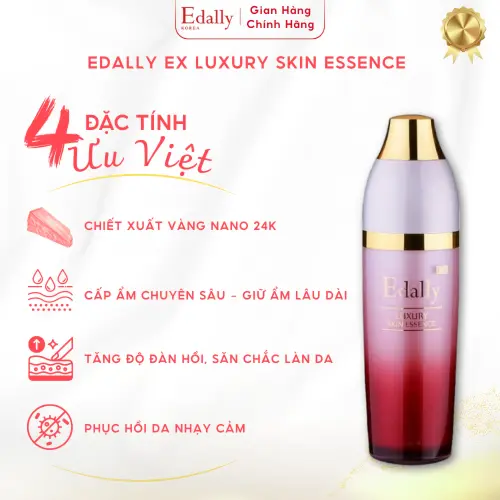 Edally EX Luxury Skin Essence là tinh chất cao cấp chứa vàng nano 24K tinh khiết, ứng dụng công nghệ chăm sóc da hiện đại giúp tác động sâu vào cấu trúc da. Sản phẩm hỗ trợ nâng cơ, trẻ hóa, làm sáng da và phục hồi những tổn thương do lão hóa, môi trường ô nhiễm hoặc mỹ phẩm kém chất lượng.
