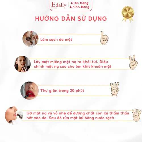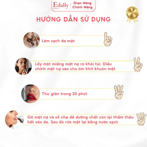 Lưu ý: Sử dụng 2-3 lần/tuần để đạt hiệu quả tốt nhất. Không đắp mặt nạ qua đêm. Tránh sử dụng nếu da đang bị tổn thương nặng.