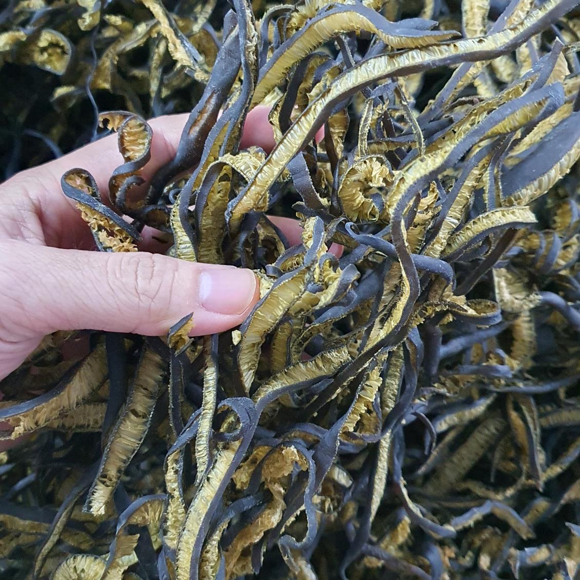 - Hình dạng: Sợi tảo cắt dọc, dài 5-7cm, lõi vàng nhạt, vỏ đen tự nhiên