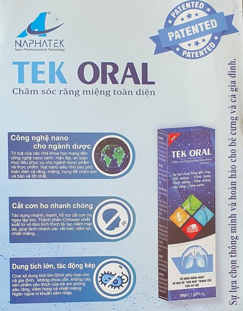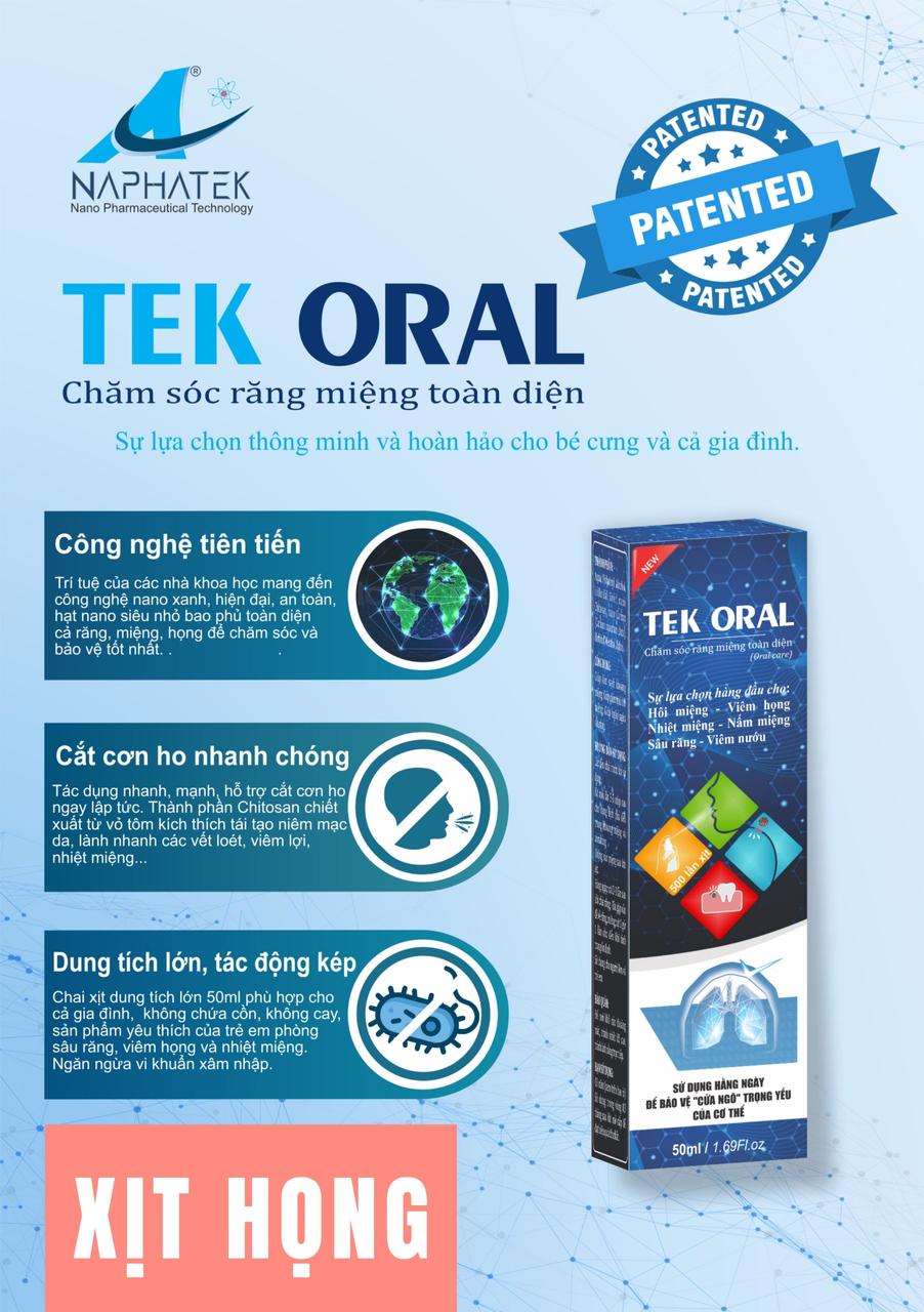 Xịt Miệng Tek Oral - Sự lựa chọn an toàn và hiệu quả cho sức khỏe răng miệng và họng của bạn. Đừng để các vấn đề như tay chân miệng và viêm họng làm ảnh hưởng đến cuộc sống hàng ngày của bạn. Hãy tin tưởng và sử dụng Xịt Miệng Tek Oral ngay hôm nay!