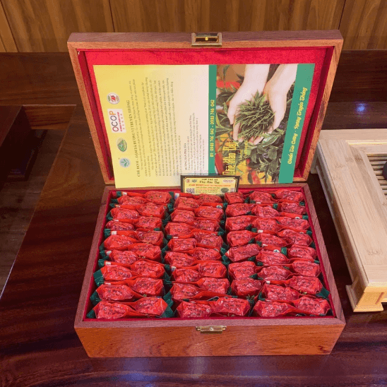 BỘ HỘP GỖ CHÈ ĐINH SANG TRỌNG – HTX CHÈ HẢO ĐẠT – TÂN CƯƠNG THÁI NGUYÊN – OCOP 5 SAO QUỐC GIA