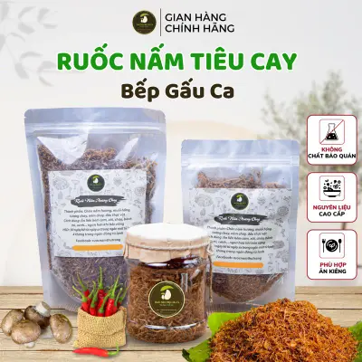 Ruốc Nấm Tiêu Cay Bếp Gấu Ca – Ruốc Nấm Chay Nhà Làm Ngon Sạch, Không Chất Bảo Quản - Túi zip 100g,250g,500g