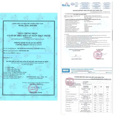 - Có phiếu kiểm nghiệm sản phẩm tại đơn vị kiểm nghiệm đạt chuẩn