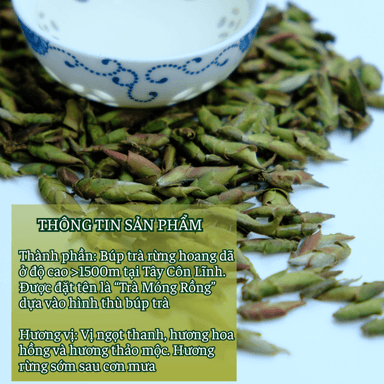 Suốt một năm, nội chất trà được tích tụ chậm rãi trong thân cây, tạo ra những búp trà to, phủ lớp vảy tựa vảy rồng, hình dáng như móng linh thú. Từ hình thái đặc biệt này, biểu tượng Rồng được chọn làm dấu ấn và tên gọi Trà Móng Rồng ra đời. Đây chính là yếu tố làm nên giá trị sưu tầm và quà biếu khác biệt của sản phẩm.