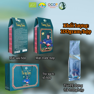 Trà sử dụng búp và lá non của cây Shan Tuyết cổ thụ có tuổi đời khoảng 150 đến 500 năm, sinh trưởng tự nhiên trong điều kiện núi cao, cho chất trà dày và nội chất sạch.