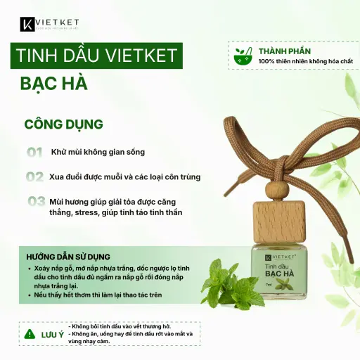 Tinh Dầu Bạc Hà VIETKET 7ml – Treo Thơm Xe, Khử Mùi, Đuổi Muỗi, Thơm Phòng