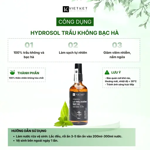 - Thành phần: Nước, Lá Trầu Không, Bạc Hà