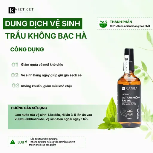 Nếu bạn cần dung dịch vệ sinh không bọt – thảo dược trầu không & bạc hà giúp sạch thoáng, giảm ngứa mùi, kháng khuẩn ngừa nấm, thì VIETKET 100ml là lựa chọn đáng tin cậy cho chăm sóc hằng ngày.