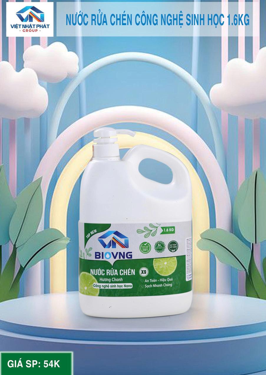 Rửa Chén Công Nghệ Sinh Học BIOVNG là sản phẩm vệ sinh bát đũa an toàn, thân thiện với môi trường, với độ đậm đặc cao, không ăn da tay và không hại sức khỏe. Được chiết xuất từ nguyên liệu sinh học, sản phẩm mang hương thơm tự nhiên từ chanh và quế, giúp xử lý mọi vết bẩn dầu mỡ bám trên bát đũa mà không lưu lại mùi hương trên đồ dùng. Chứa thành phần vitamin E và dầu dừa để bảo vệ da tay luôn mềm mại, đồng thời tiết kiệm nước.