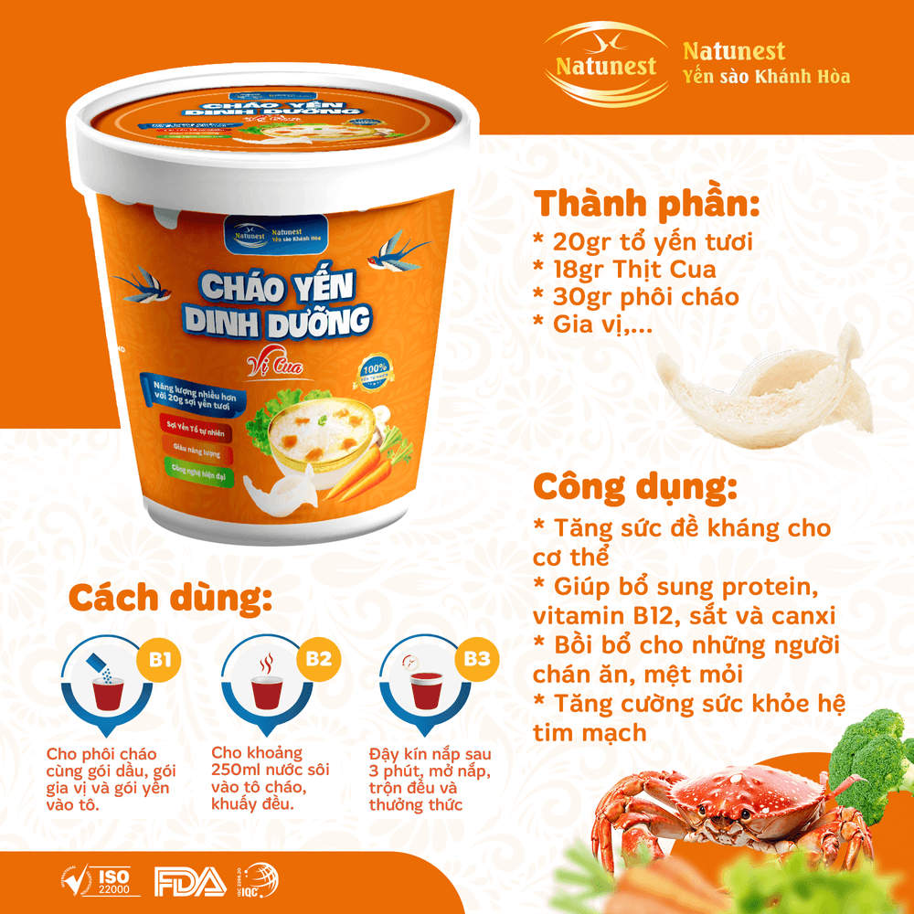 Cháo Yến Dinh Dưỡng Vị Cua Biển Natunest - bữa ăn dinh dưỡng trọn vẹn cho cả gia đình, giúp chăm sóc sức khỏe mỗi ngày một cách dễ dàng.