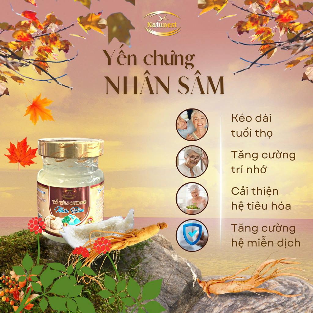 Tổ Yến Chưng Nhân Sâm Natunest là lựa chọn lý tưởng để bồi bổ sức khỏe, tăng trí nhớ và chống lão hóa, phù hợp dùng hằng ngày hoặc làm quà biếu cao cấp.