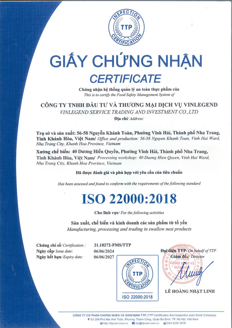 - Tiêu chuẩn chất lượng: Đạt ISO 22000, FDA