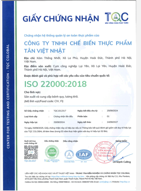 Thương hiệu: Tân Việt Nhật (Chuẩn ISO 22000:2018).