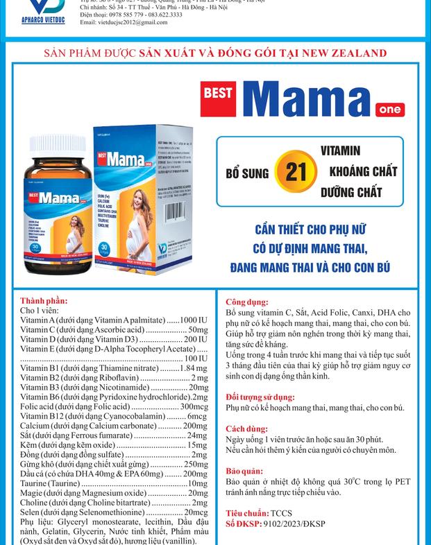 BEST MAMA ONE – Vitamin tổng hợp cho phụ nữ chuẩn bị mang thai, đang mang thai & cho con bú