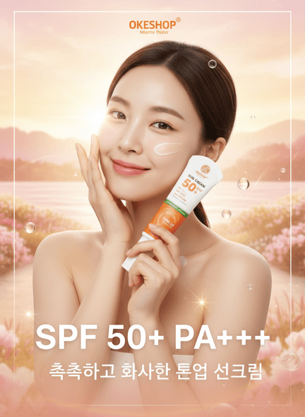 SUN CREAM OKESHOP sẽ giúp nuôi dưỡng cho làn da bạn luôn ẩm mượt, gia tăng độ đàn hồi, chống oxi hóa, tăng cường sức khỏe cho da khỏe mạnh, bảo vệ da khỏi những tác động tiêu cực từ môi trường. Đồng thời, kem chống nắng còn bổ sung lượng nước, cấp ẩm dồi dào giúp làn da mềm mại, mượt mà hơn với chiết xuất dưỡng da từ thiên nhiên của hoa trà xanh, nha đam, hắc mai biển mang lại cho các nàng một cảm giác thoải mái dịu nhẹ thanh mát trong cả ngày dài