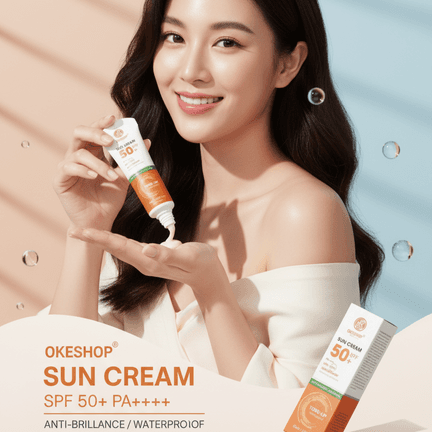 SUN CREAM OKESHOP SPF 50+ PA++++ Anti-oxydant 60ml giúp ngăn chặn 99% tia UV với chỉ số chống nắng cao SPF50+ PA++++ chống được tối đa tia UVA/UVB ngay cả khi bạn không trang bị cho mình đầy đủ áo, khẩu trang khi ra ngoài. OKESHOP SPF 50+ PA++++ Anti-oxydant 60ml giúp bảo vệ làn da của bạn an toàn dưới ánh nắng mặt trời mà vẫn dịu nhẹ, không gây hại cho da.