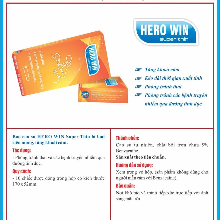 Tên sản phẩm: Bao cao su HERO WIN Super Thin