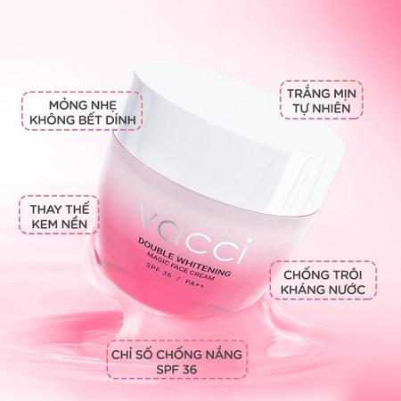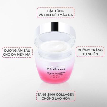 Bạn đang tìm kiếm một loại kem dưỡng vừa có khả năng làm trắng da từ bên trong, vừa có thể thay thế kem chống nắng và kem lót trang điểm? Vacci Face Cream chính là giải pháp hoàn hảo giúp bạn sở hữu làn da mịn màng, rạng rỡ chỉ sau một bước thoa kem.