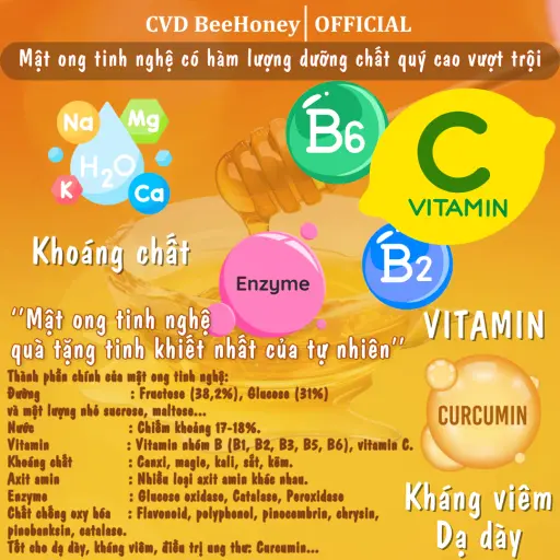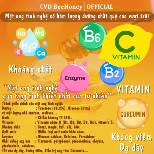 Mật Ong Nguyên Chất Tinh Bột Nghệ CvdBeehoney 100% tự nhiên - giải pháp chăm sóc dạ dày, tiêu hóa và làn da an toàn cho cả gia đình.