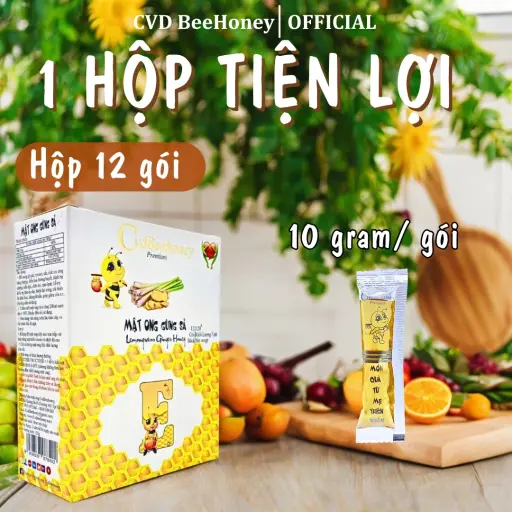 Mật Ong Gừng Sả Nguyên Chất CvdBeehoney Chai PET 500ml/Hộp 12 gói x 10g – Mật Ong Tự Nhiên - Tăng Sức Đề Kháng, Kháng Khuẩn, Giữ Ấm Cơ Thể