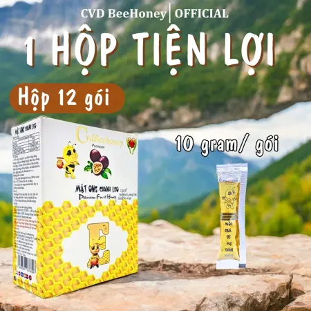 Mật Ong Chanh Leo Nguyên Chất CvdBeehoney Chai PET 500ml/Hộp 12 gói x 10g - Mật Ong Tự Nhiên - Tăng Đề Kháng, Giảm Ho, Tốt Cho Mắt & Tiêu Hóa