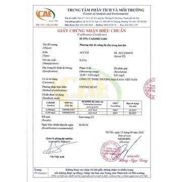 KATA ACC220 đạt chứng nhận hiệu chuẩn từ Trung tâm Phân tích và Môi trường, khẳng định chất lượng và độ tin cậy khi lưu hành trên thị trường.