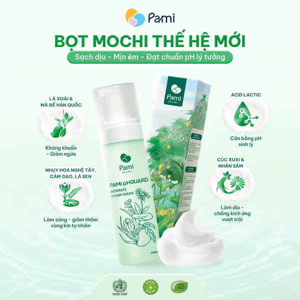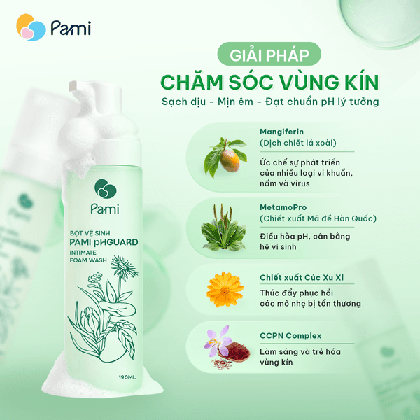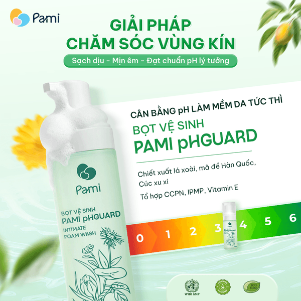 Pami pHGuard 190ml là dung dịch vệ sinh phụ nữ dạng bọt siêu mịn tạo sẵn, giúp làm sạch nhẹ nhàng vùng kín mỗi ngày mà không gây khô rát hay kích ứng.