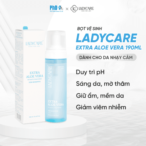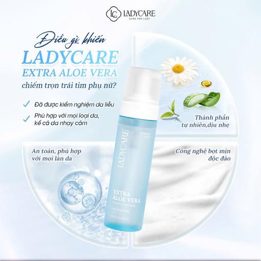 Dung dịch vệ sinh dạng bọt Ladycare Extra Aloe Vera 190ml – Bọt vệ sinh phụ nữ cho da nhạy cảm