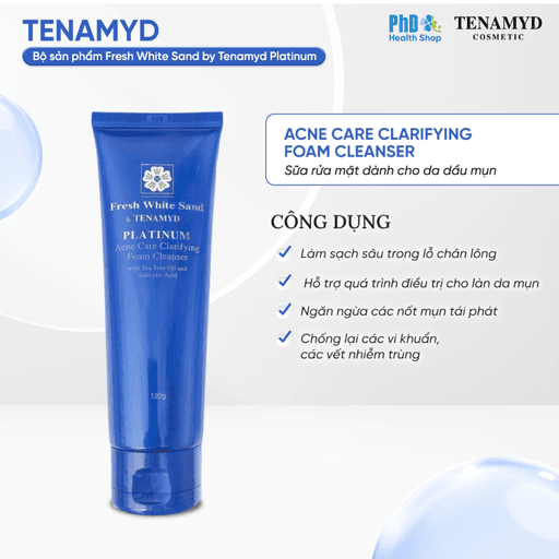 Sữa rửa mặt Tenamyd Fresh White Sand Platinum III là giải pháp làm sạch chuyên sâu dành riêng cho da dầu, da mụn và da tiết nhiều bã nhờn. Với công thức dịu nhẹ từ chiết xuất thiên nhiên, sản phẩm giúp loại bỏ bụi bẩn, dầu thừa và lớp trang điểm mà không gây khô căng, đồng thời hỗ trợ ngăn ngừa mụn, dưỡng ẩm và cải thiện độ sáng mịn cho da.