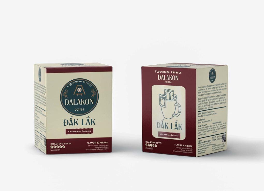 Cà phê rang xay DALAKON Đắk Lắk dạng hộp gói tiện lợi được sản xuất từ 100% hạt Robusta Việt Nam tuyển chọn tại vùng trồng cà phê danh tiếng Đắk Lắk. Đây là khu vực được xem là trung tâm cà phê Robusta chất lượng cao của Việt Nam, nổi bật với hương vị đậm mạnh và hàm lượng caffeine tự nhiên cao.