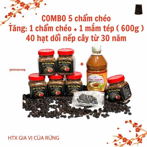 Combo 4 Lọ Chẩm Chéo Tây Bắc Tặng 20 Hạt Dổi + 1 Mắm Tôm + 1 Mắm Tép 300g - Gia Vị Núi Rừng Chuẩn Vị