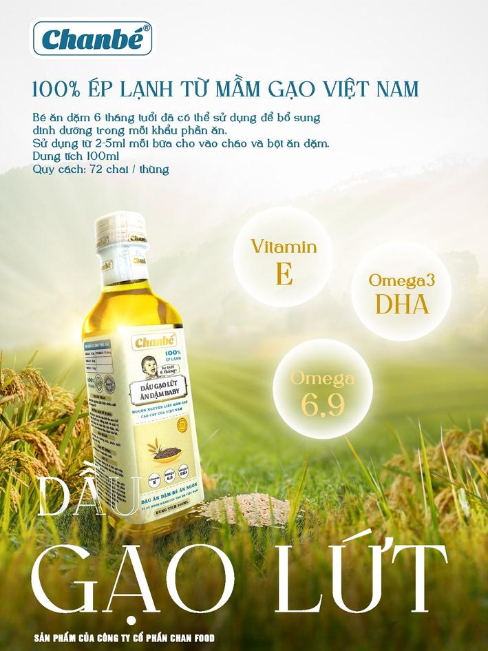 Dầu ăn dặm Gạo Lứt Chan Bé là dầu nguyên chất 100% ép lạnh từ hạt gạo lứt, tốt cho sức khỏe của bé. Đặc biệt không mùi không vị, lý tưởng cho bé kén ăn hoặc mới bắt đầu tập ăn dặm.