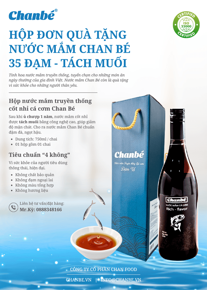 Sản phẩm biếu tặng Nước mắm cốt nhỉ cá cơm Rich-flavor 35 độ đạm Chan Bé (hộp xanh)