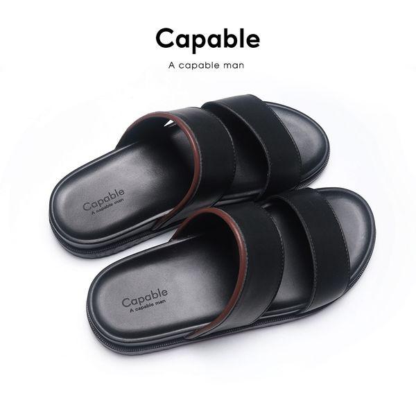 Dép Da Nam Quai Ngang CAPABLE CD002 - Da Thật 100% Chống Thấm Nước,Êm Chân - Bảo Hành 12 Tháng
