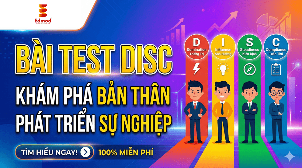 Mỗi người chúng ta đều sở hữu một “ADN cá tính” riêng biệt. Và Bài Test DISC tại Edmod chính là chiếc chìa khóa giúp bạn mở cánh cửa khám phá bản thân một cách khoa học, trực quan và đầy cảm hứng.