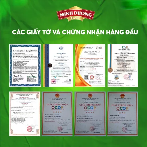 - Chứng nhận: ISO 9001:2015, OCOP, HACCP