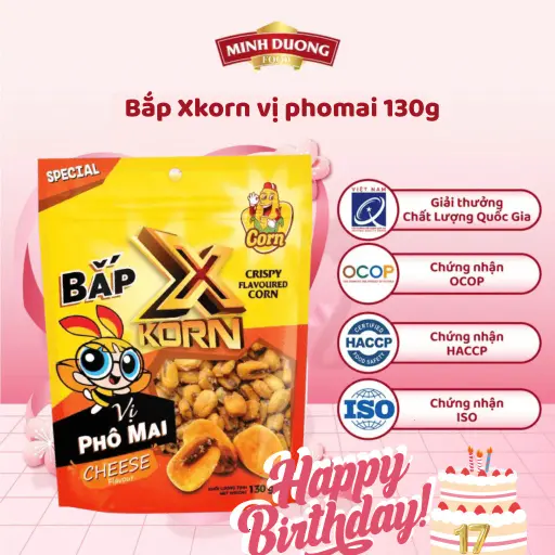 - Tên sản phẩm: Bắp XKorn Vị Phô Mai Minh Dương Food