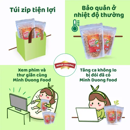 - Tên sản phẩm: Ngô Cay Chiên Giòn Xóc Mắm Tỏi Minh Dương Food