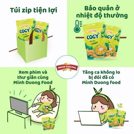 - Ăn vặt tiện lợi: Phù hợp làm snack hàng ngày, có thể ăn trực tiếp hoặc dùng kèm sữa chua, ngũ cốc, món tráng miệng.