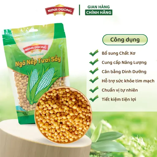 Nếu bạn đang tìm một món snack giòn ngon, tiện lợi và giàu dinh dưỡng, hãy thử ngay Ngô Nếp Tươi Sấy COGY Minh Dương Food để thưởng thức vị ngô nếp thơm ngon tự nhiên trong từng hạt.