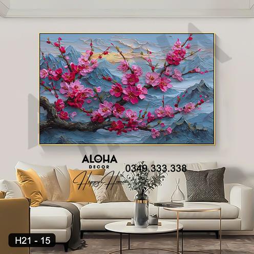 Tranh Hoa Đào Nghệ Thuật 3D Sơn Dầu, Tranh Treo Tường Phòng Khách Sang Trọng – Aloha Decor H21-15