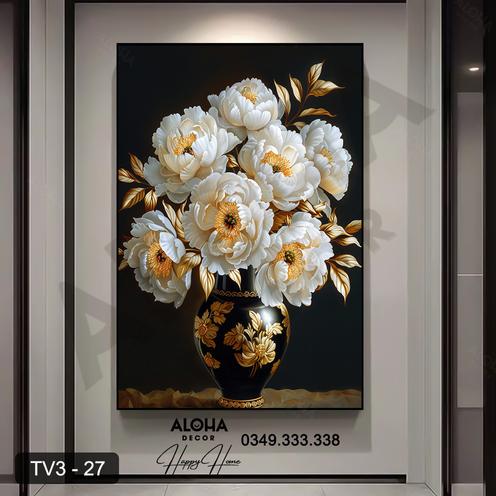 Tranh Hoa Mẫu Đơn Trắng Vàng Kim – Aloha Decor