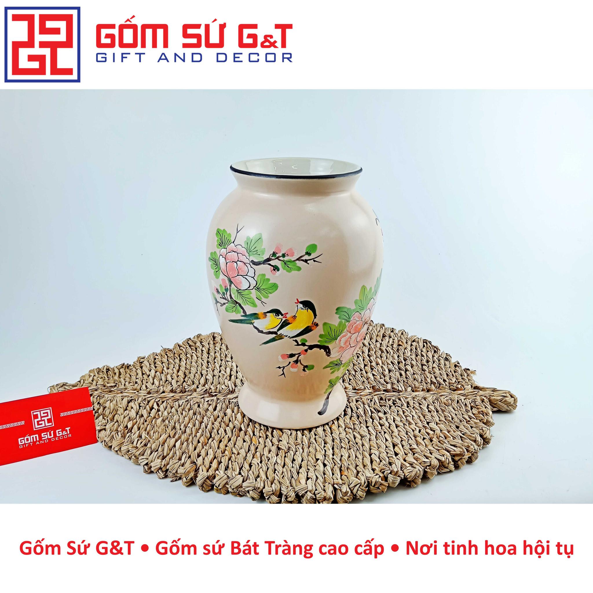 Lọ hoa dáng đùi dế vẽ chim hoa phù dung