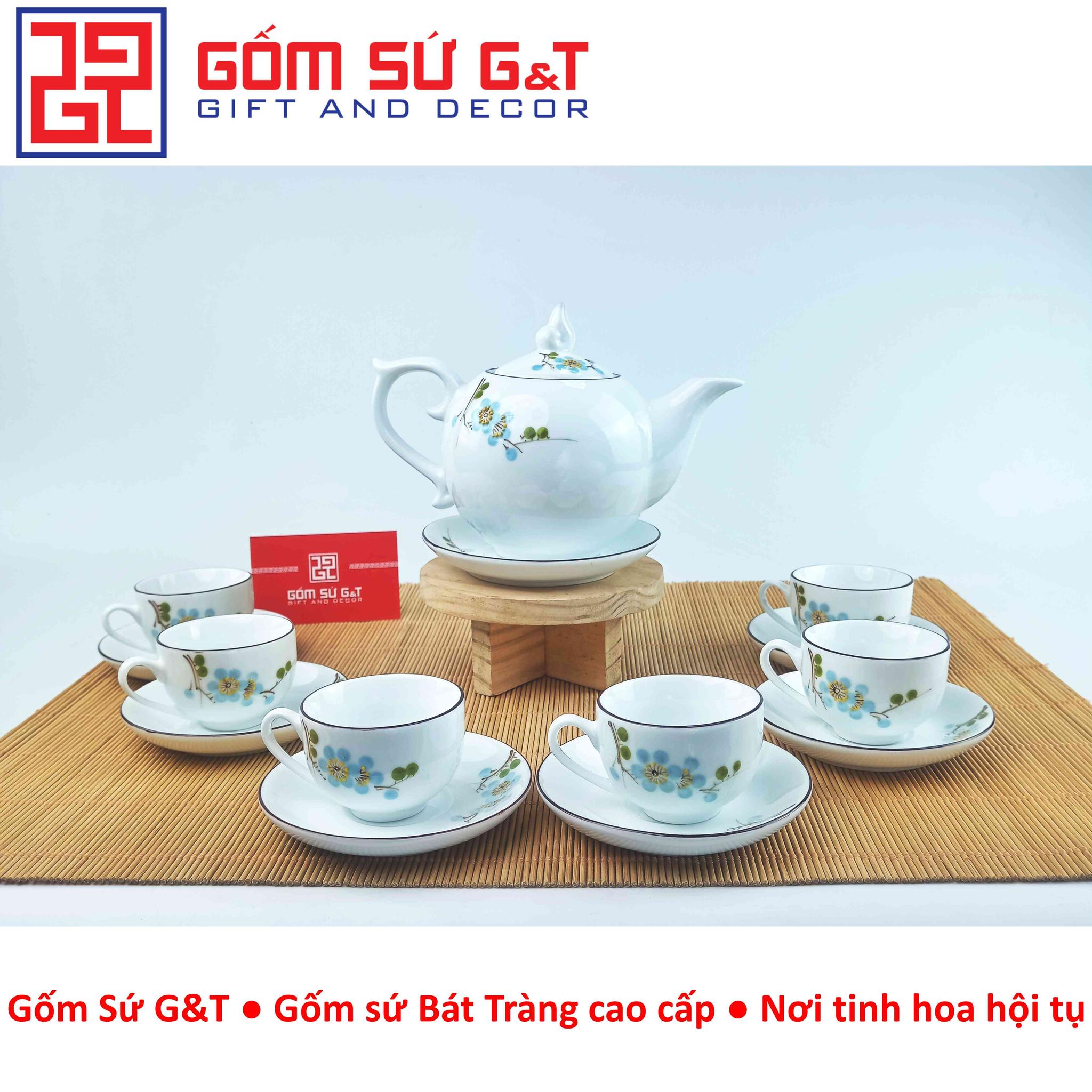 Bộ trà chóp lửa vẽ hoa đào xanh