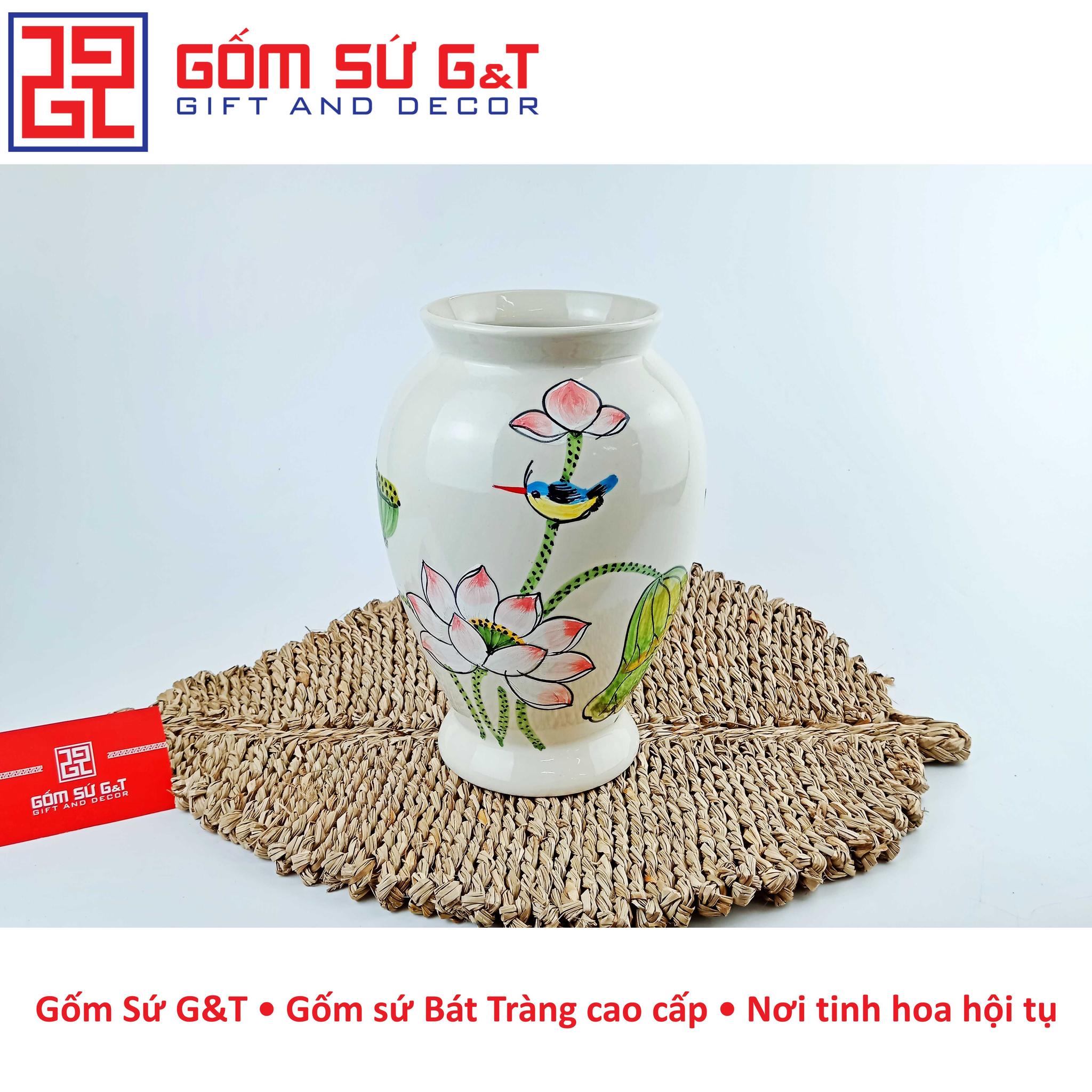 Lọ hoa dáng bom vẽ sen chuồn