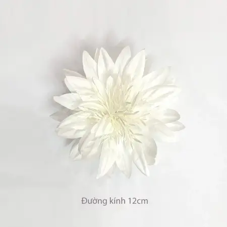 Hoa được làm từ chất liệu vải lụa cao cấp, mềm mại và tự nhiên, giúp tạo nên vẻ đẹp tinh tế và sang trọng. Phần đầu bông hoa được thiết kế gọn gàng, dễ dàng kết hợp với nhiều loại phụ kiện khác nhau như kẹp tóc, băng đô, vòng hoa đội đầu, hoa cầm tay hoặc đồ trang trí thủ công.