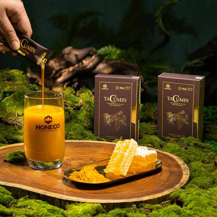 Tacumin là dòng sản phẩm cao cấp của thương hiệu Honeco, sự kết hợp hoàn hảo giữa ba "dược liệu vàng" từ thiên nhiên: mật ong tự nhiên, sữa ong chúa tươi và Curcumin chiết xuất từ củ nghệ vàng. Với giải pháp công nghệ hiện đại và công thức tối ưu, Tacumin không chỉ là thực phẩm bồi bổ mà còn hỗ trợ đắc lực trong việc bảo vệ niêm mạc đường tiêu hóa, giúp trung hòa acid dạ dày và làm lành các vết viêm loét dạ dày, tá tràng hiệu quả.