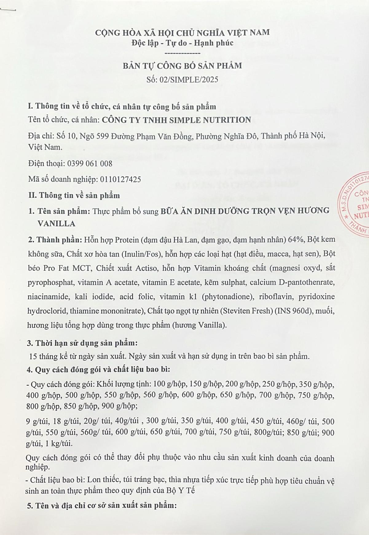 THÀNH PHẦN SIMPLE MEAL: