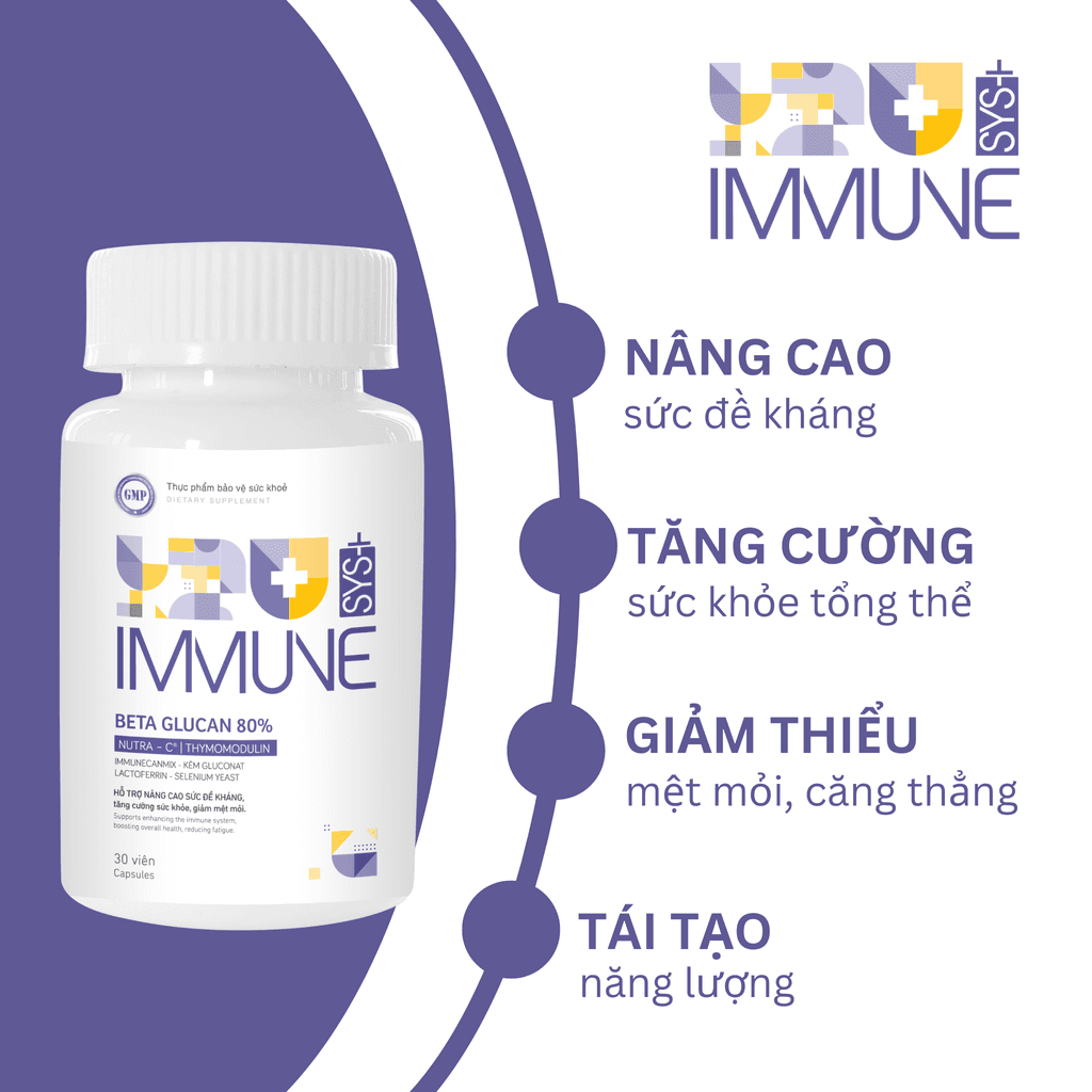 Viên uống Immune Sys+ với công thức ưu việt, kết hợp tối ưu giữa các hoạt chất quan trọng giúp kích hoạt hệ miễn dịch và các dưỡng chất quý giá từ thiên nhiên giúp bồi bổ cơ thể, duy trì, hỗ trợ và cân bằng hệ thống miễn dịch một cách tự nhiên, thích hợp để sử dụng mỗi ngày.