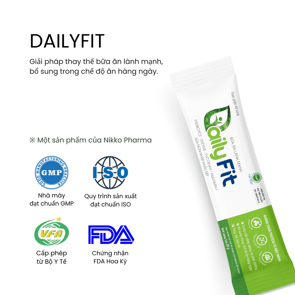 Mỗi một gói DailyFit 25g là một bữa ăn thay thế lành mạnh, an toàn tuyệt đối để sử dụng mỗi ngày với 5 tiêu chí quan trọng: